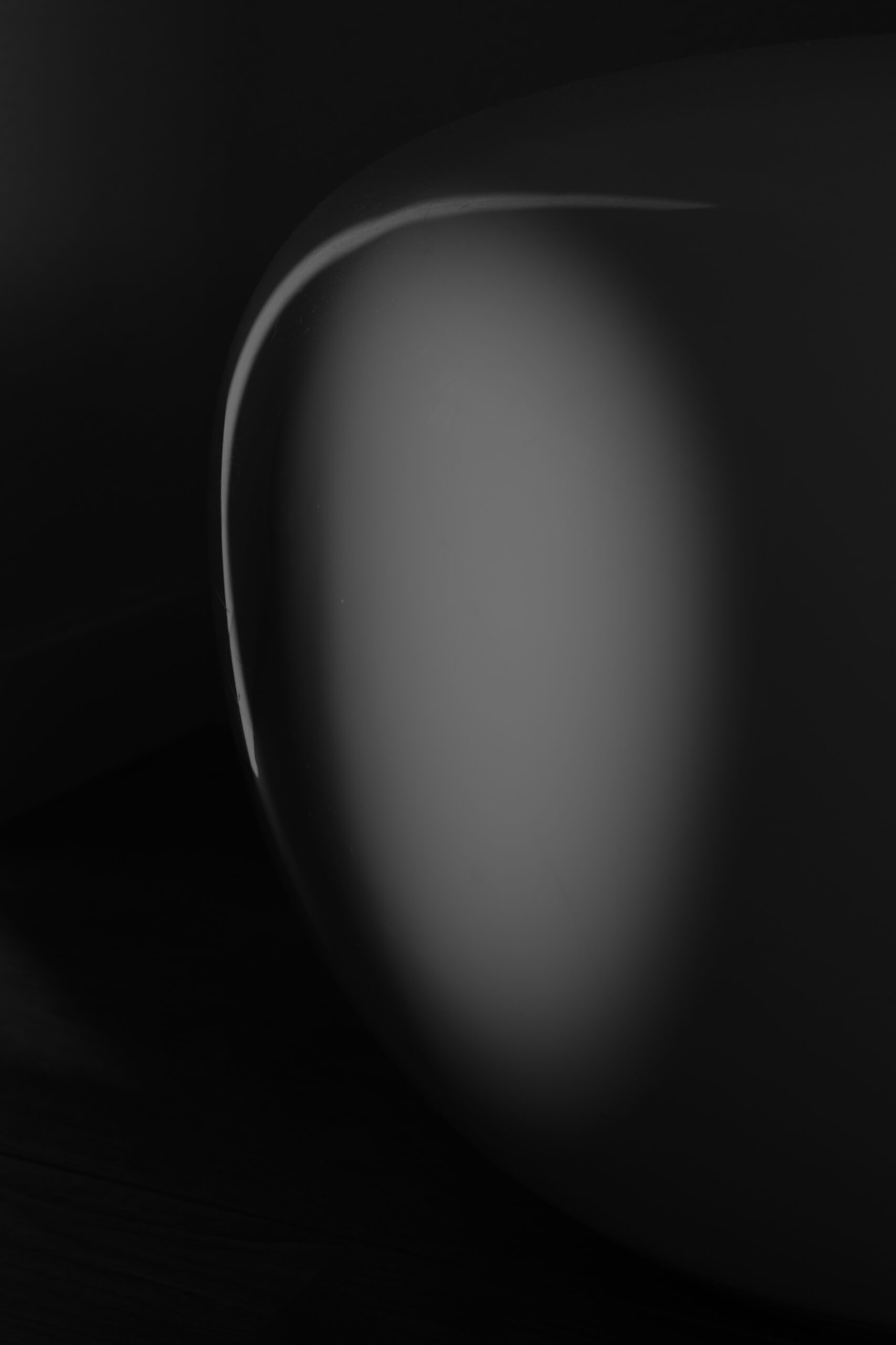 Donkere achtergrond, lichte streep, waar aan de linkerbovenkant een deel van een cirkel uit is.